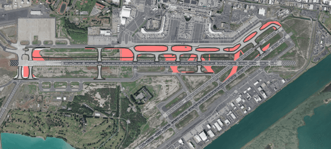 The objective of this project located at the Daniel K. Inouye International Airport was to correct multiple FAA safety “Hot Spots” and other areas of problematic and/or non-standard taxiway geometry, to increase airfield safety and capacity. The project will replace significant areas of failed or deteriorated pavement that is well past its service life. It includes includes reconstruction and realignment of existing Taxiway A between Taxiway G and Runway 22R, construction of new connector taxiways between Taxiways A and Z, and construction of new runway entrance/exit taxiways to Runways 8L-26R and 4L-22R. The scope also includes realignment of Taxiway Z east of existing Taxiway E.
