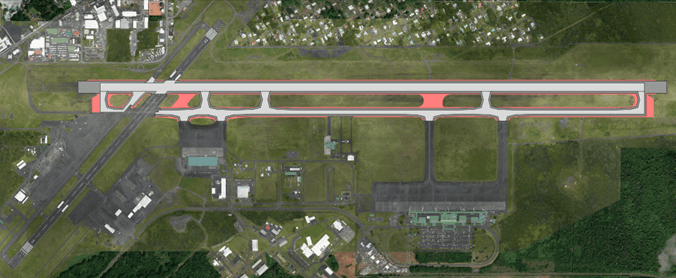 The objective of this project located at the Hilo International Airport was to repair, resurface, and replace the failed and deteriorating pavement sections on the primary runway at Hilo International Airport, the adjacent taxiways and the associated shoulders. The project will also address other areas of problematic and/or non-standard taxiway geometry, to increase safety and capacity of the airfield.